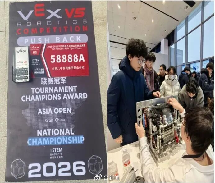 1月1日,2025—2026赛季VEX机器人亚洲公开赛总决赛在西安落下帷幕。来自合肥八中教育集团蜀山分校的王嘉佑、彭启洋、夏佐组成的战队,从全国近700支精英赛队的2500余名科创少年中脱颖而出成功摘得全国总冠军。合肥一中机器人队最终斩获联赛总季军、分区亚军,并在技能赛项目中夺得季军。他们同时成功获得通往世锦赛的参赛资格。